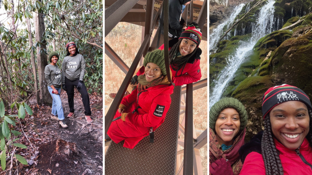Photos of our friends Kristen Walker and Diamon Clark with Our Parks Too during their trip to the New River Gorge National Park and Preserve!